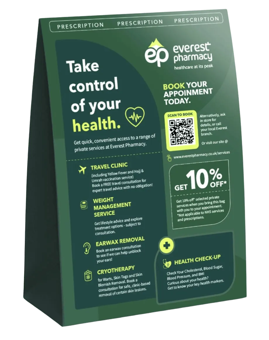 Tell us about your pharmacy business and your requirements for the bags. Not sure? We can help - or do it all for you!